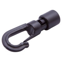 Black POM plastic elastic cord hook with closed end. 1/4" size.