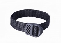 Black polypropylene webbing spray tank strap with steel nickel hardware. 1 3/4" wide.