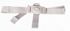 Tan polypropylene webbing high chair strap with tan plastic hardware. 1" wide.