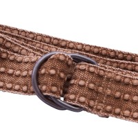 Distressed brown webbing d ring belt, black metal hardware.