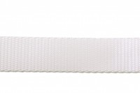 Woven nylon webbing in white. Available in 1", 1 1/4", 1 1/2", and 2" widths. Other widths can be made to order. Note: case pack quantity for 2" width is 250 yards.
