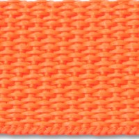 Lightweight woven polypropylene webbing in orange. 1" wide. Other woidths woven to order.