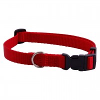 Red nylon adjustable dog collar, available in toy, small, medium and large sizes..