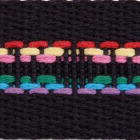Webbing, 1-1/2" Black with multi colored Diamond Pattern, made to order.
