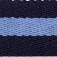 1-1/4" Heavy weight cotton webbing, Navy/Pastel Blue stripe, made to order.